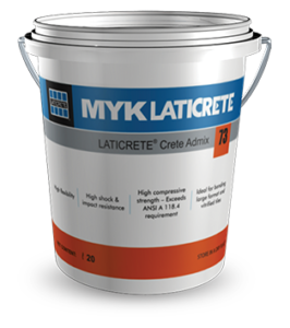 LATICRETE® 73 is a Latex Crete Admix mixed with LATICRETE® 111 Crete Filler Powder /Adhesives to form tile setting beds. Tile setting adhesives made with LATICRETE® 73 Crete Admix provide increased flexibility, stronger bond and compression strength when compared with conventional portland cement mortars. This increased bond strength is especially vital when installing semi and fully vitrified tiles, quarry tiles, pavers and other ceramic floor and wall tiles used in highly critical areas such as external facades, industrial plants, swimming pools and heavy traffic areas. Also provides longer potlife & working time in hot weather conditions.