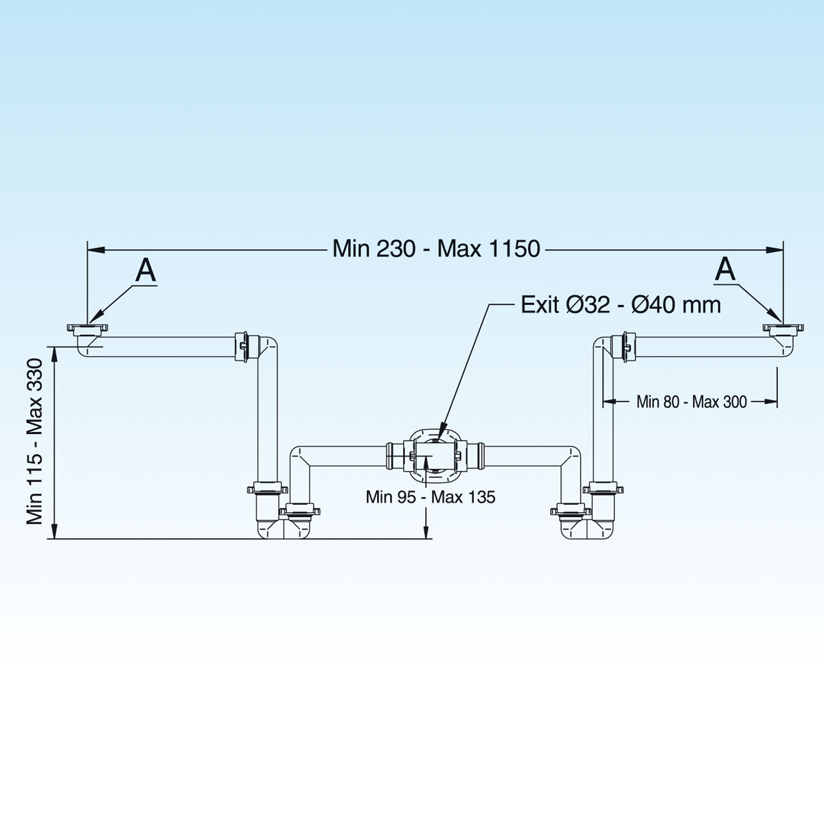 Space saver trap for double bowl washbasins