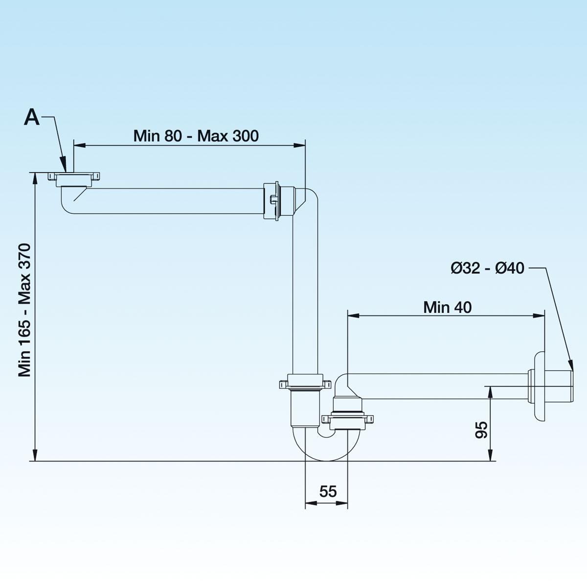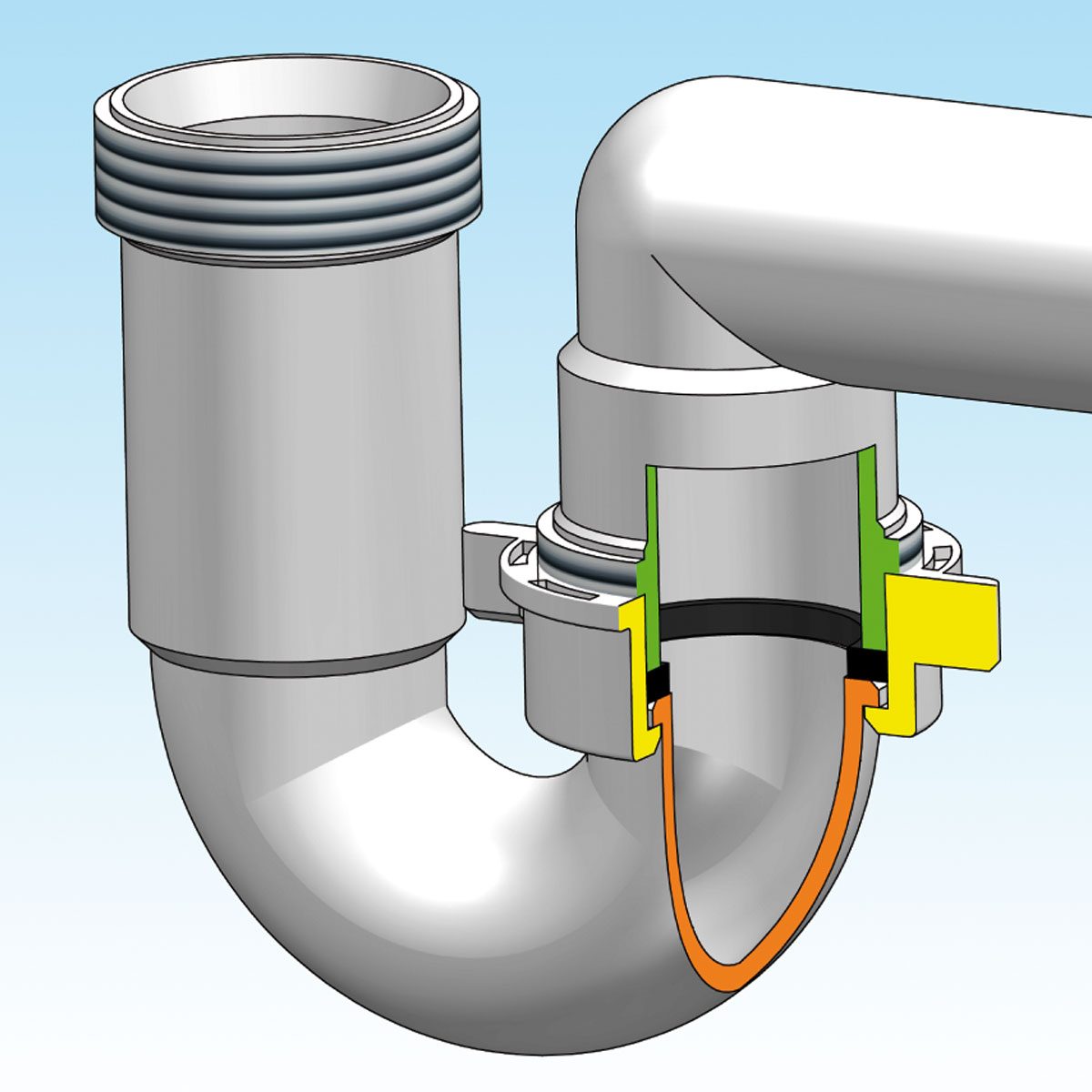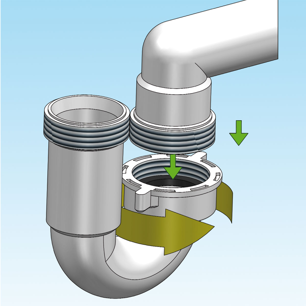 Space saver trap for washbasin – started flow.